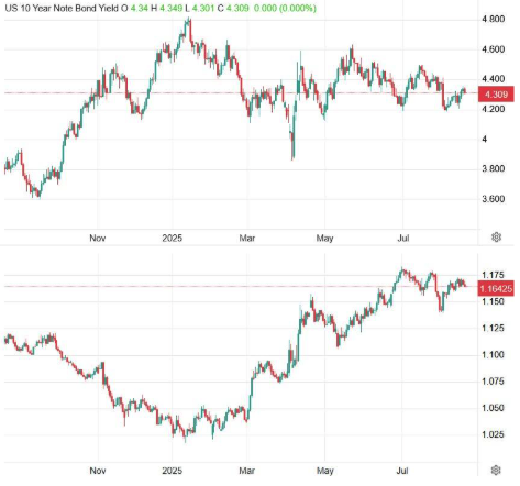 Rate cuts in the U.S. are expected to begin at the September meeting, a development that I believe will trigger massive investment capital inflows, as investors seek to “lock in” the high yields still offered by U.S. government bonds relative to other countries. These flows, in my opinion, will also contribute to strengthening the dollar, as I have emphasized since the start of the year. However, we must also account for any short-term volatility that may emerge once President Trump succeeds in bringing the war in Ukraine to an end, an outcome we have repeatedly stressed we expect within 2025.