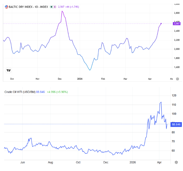 The Baltic Dry Index has historically functioned as a leading indicator of the real economy, anticipating changes in demand before they are reflected in macroeconomic data — a role that, in our view, is being clearly reaffirmed in the current environment.