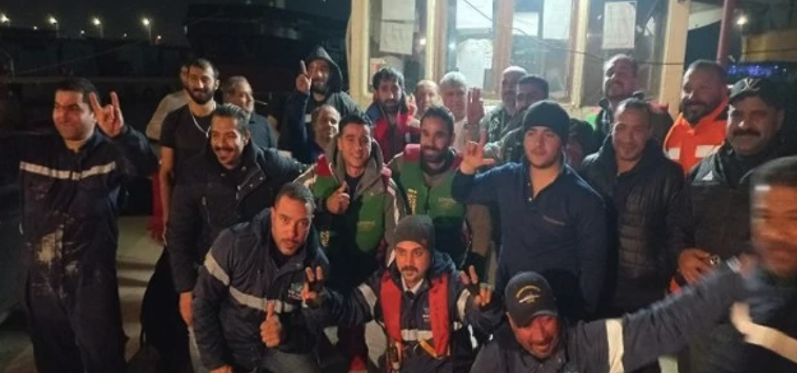 Egyptian authorities are reporting that they were able to rescue a dozen crewmembers from a small cargo ship that was in danger of sinking in the anchorage near Port Said. The rescue was the successful conclusion after a series of calamities.