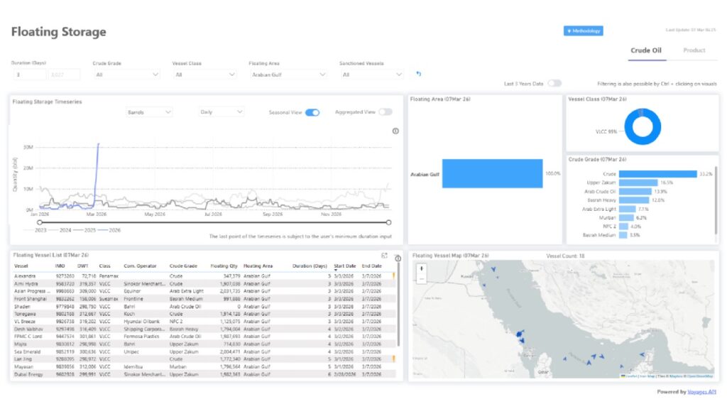AIS tanker transit data and floating storage levels offer the clearest signals of how the situation is evolving.
