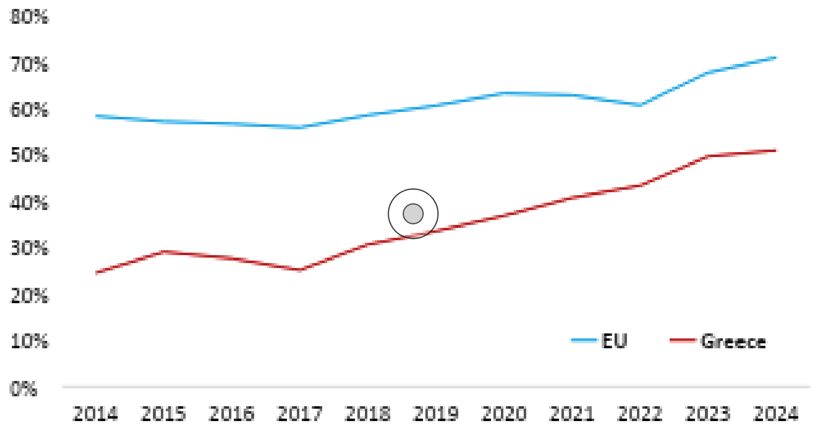 Since the 1970s, Greece’s energy system has relied on imported energy. Limited domestic production meant reliance on imported fuels, at levels consistently above the EU average, leaving the country exposed to supply disruptions and price volatility.
