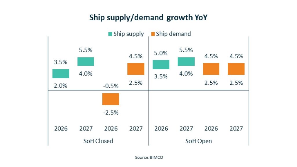 “Whether the Strait of Hormuz remains effectively closed or not, we expect a slight weakening of the global supply/demand balance in 2026 and 2027. However, if transits do not resume, liner operators will face substantial extra costs due to higher oil prices while cargo volumes will be reduced,” says Rasmussen.