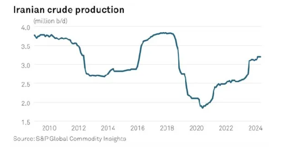 In May, Iran announced it planned to increase output by 400,000 b/d. The latest Platts OPEC+ survey by Commodity Insights tallied Iranian crude production at 3.17 million b/d in May, up from 2.66 million b/d in May of 2023.