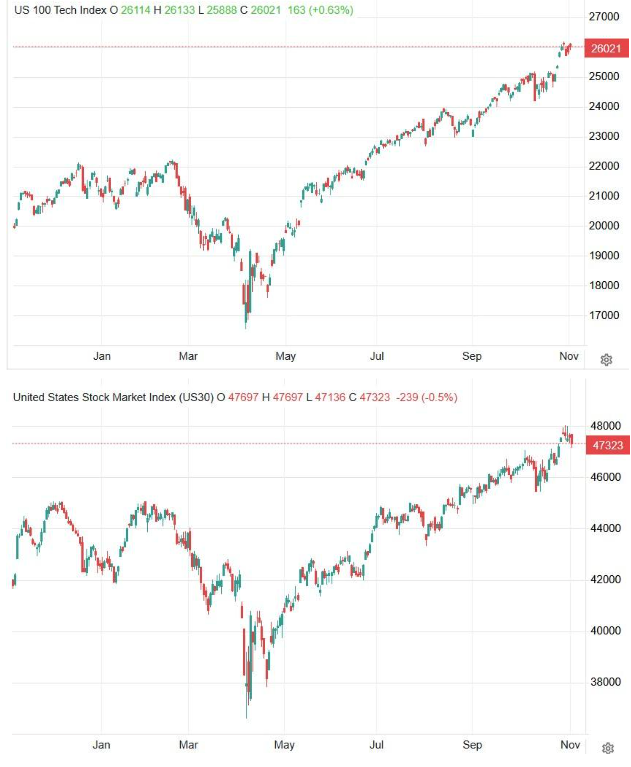 November, up until Thanksgiving Day, is traditionally one of the most decisive months of the year, and especially this year, when the markets began statistically negative during Trump’s first 100 days. Nevertheless, in our view, it finds global markets in a rare phase of equilibrium. The excess of fear, as we have repeatedly emphasized lately, has passed, as has the excess of euphoria, particularly in the technology sector. Investors must begin to approach this new period with a more mature perspective. We underline that the stability of the American economy is not accidental, but the result of political and strategic decisions aimed at reconstructing its productive foundation.
