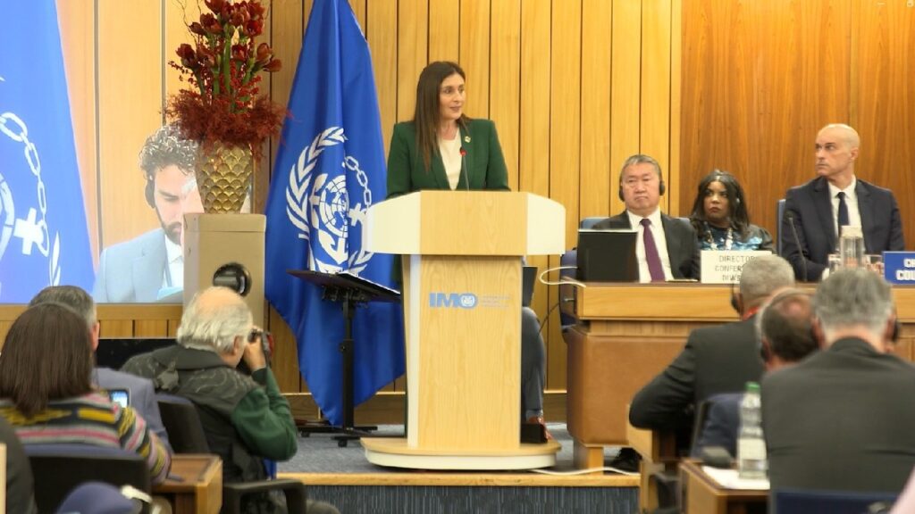 Shipping Deputy Minister of Cyprus Marina Hadjimanolis addresses the Plenary of the 34th General Assembly of the IMO