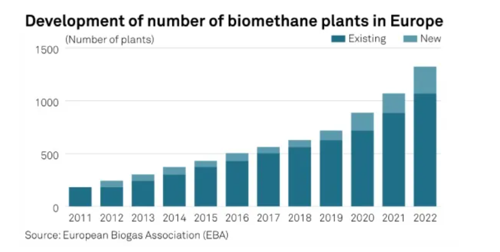 The European Biogas Association (EBA) reported that there are a total of 1,322 biomethane-producing facilities in Europe as of April 2023, a 30% increase from 2021. Over 75% of the current plants are connected to transport or distribution grids.