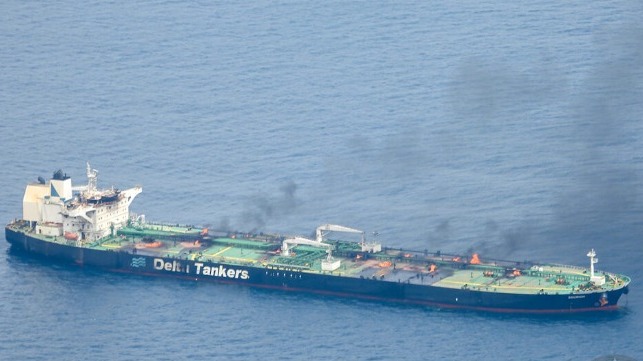 The Greek-flagged tanker Sounion was northbound in the Red Sea on August 21 when it was approached by two small boats. There was an exchange of small arms fire, and the boats withdrew. Two hours later, the tanker reported that it had been hit by two “projectiles" and sustained minor damage, but the vessel continued under its own power. Less than an hour later, the vessel was struck again, disabling the engine and leaving the ship adrift. The Indian Navy dispatched forces to safely evacuate the crew.